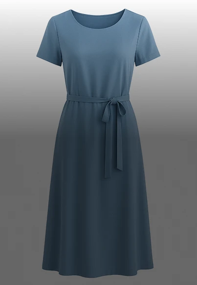 Modell aus dichtem Viskosestoff mit leichtem Glanz. Schlichter Schnitt, schmaler Gürtel, der die Silhouette formt. Das Kleid ist vielseitig einsetzbar – sowohl tagsüber als auch abends. Erhältlich in Blau und Beige.