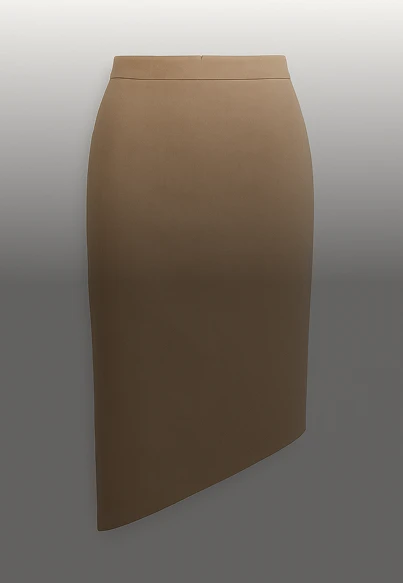 Asymmetrischer Bleistiftrock aus dichtem Baumwollstoff. Fließende Taillenlinie, verdeckter Reißverschluss, Länge unterhalb des Knies. Ideal für das Büro und Geschäftstreffen.