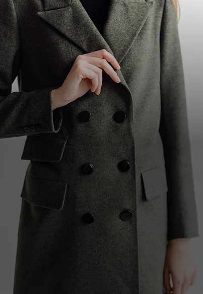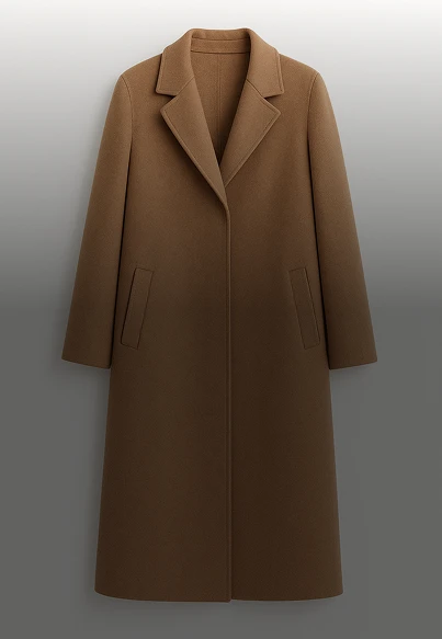 Wintermantel für Damen aus Wolle und Kaschmir. Verlängerte Silhouette, verdeckter Gürtel, tiefe Taschen. Warm, bequem, stilvoll und vielseitig. Ein Kleidungsstück, das man viele Saisons lang tragen kann.